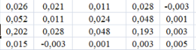 Розрахуємо коваріаційну матрицю для другої групи регіонів:
