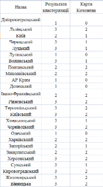 Наступним методом, який дасть змогу охарактеризувати регіони є кластерний аналіз за допомогою карт Кохонена.