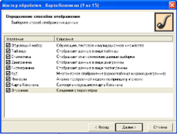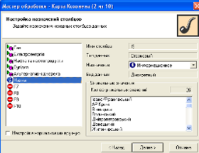 Алгоритм функціонування карт (Self Organizing Maps - SOM), що самоорганізуються, є одним з варіантів кластеризації багатовимірних векторів. Процес вибору типу обробки даних зображений і задаємо, як зображено на рис. 3.20. вхідні змінні, а також їх типи.