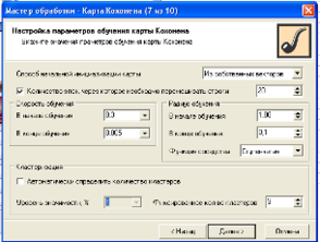 Рис. 3.23. Задання параметрів навчання карт Кохонена