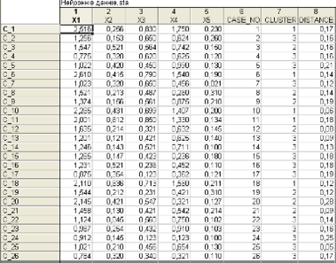 З приведених результатів бачимо, що кластеризація виконана вірно, бо значення евклідової відстані та кластеризації суттєво відрізняються. Як видно з рис. 3.15., якість кластеризації задовольняє, окрім показників Х5 та Х2: