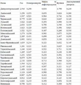 Як висновок можна сказати, що сформована класифікація регіонів за основними характеристиками і складовими елементами енергоефективності, що дозволяє провести диференціацію регіонів по наявності і ефективності використання енергетичних ресурсів.
