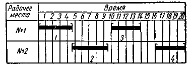Каждая операция на рисунке представляется отрезком, по длине равным продолжительности выполнения операции в выбранном масштабе времени.
