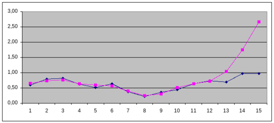 | 15 | 0,98 | 2,50 | -1,52 | 0,16 | 2,83 | 2,66 | -1,72 |