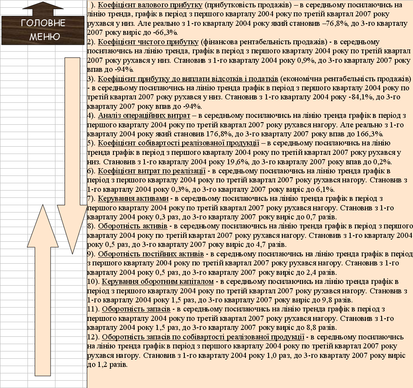 Опис фінансових коефіцієнтів ВАТ “ВРЗ” (рис.3.6). Для цього потрібно натиснути лівою кнопкою на вікно з надписом Опис фінансових коефіцієнтів.