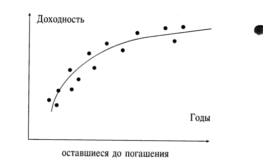 Кривая является результатом графического отражения доходов по облигациям по отношению ко времени, которое осталось до конца срока действия каждой облигации (примечание: каждый крестик на графике означает доходность облигации по цене, по которой облигация котируется в этот момент времени), а затем проводится усредняющая линия. Следует заметить, что кривая становится более пологой на более длительных сроках. Это отражает тот факт, что у инвесторов возникают практически одинаковые ожидания относительно облигаций со сроком погашения более пятнадцати лет, и в этой области возникает большой спрос на эти инструменты со стороны институтов, предпочитающих долгосрочные вложения.