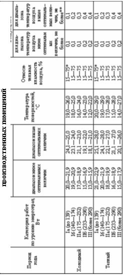 При этом абсолютные значения температуры воздуха не должны выходить за пределы величин, указанных в табл. 5.2 для отдельных категорий работ.
