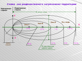 Характеристика зон радиоактивного загрязнения территории на следе облака и в районе ядерного взрыва