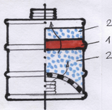 Рисунок 3 Гопкалітовий патрон (1 гопкаліт; 2 висушувач (силікагель))