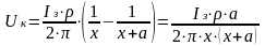 Оскільки точка 1 знаходиться на відстані х від заземлювача, то її потенціал при напівсферичному заземлювачі дорівнює