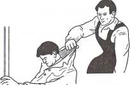 При напряжении до 1000 В для отделения пострадавшего от то-коведущих частей можно воспользоваться любыми непроводящими ток предметами: обмотать руку шарфом, оттянуть его за одежду, встать на сверток сухой ткани, сухую доску. Даже голой рукой можно оттянуть пострадавшего за его сухую одежду (рис. 6.17), отстающую от тела (за ворот, хлястик, полу пиджака). Нельзя тянуть за брюки или обувь, которые могут оказаться сырыми или иметь металлические детали, соприкасающиеся с телом.