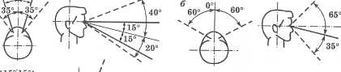 Информационные зоны визуального поля обзора человека представлены на рис. 3.4 и определяются полями зрения, размеры которых выражаются углами зрения. Время некоторых сенсомоторных реакций человека представлены в табл. 3.2, 3.3.