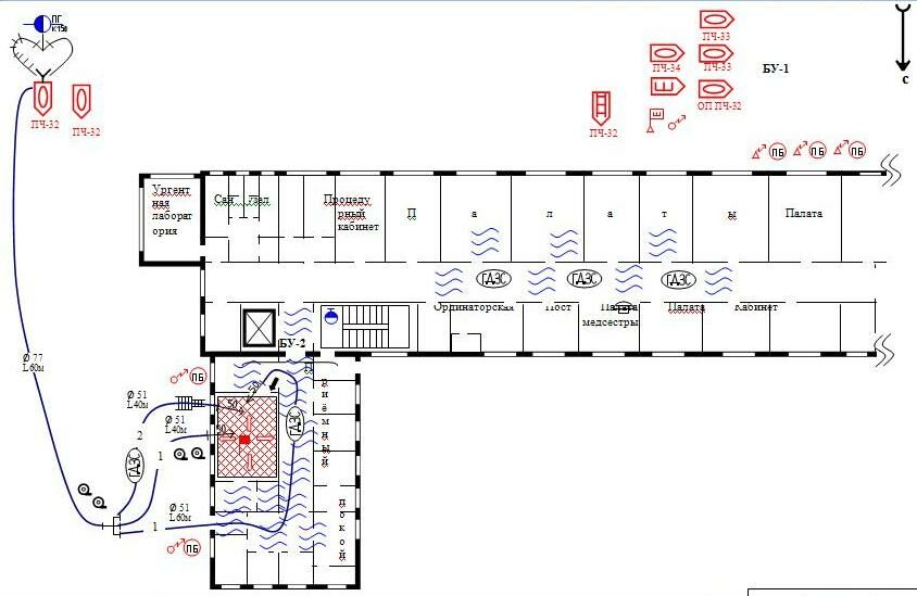 • на схемах боевого развертывания необходимо указать диаметры рукавов магистральных линий, количество рукавов в них и напоры на головных и промежуточных насосах пожарных автомобилей;