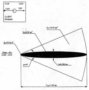 Рис. 5.3 Графічне зображення зони хімічного зараження НХР.
