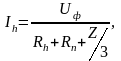 если Uф = 220 В, Rh = 1 кОм, Z = 90 кОм, то Ih = 220/(1000 + (90000 / 3)) = 0,007 А (7 мА).