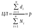 Контрольна карта часток невідповідностей для певного процесу створюється на основі загальної середньої частки невідповідних виробів, яка приймається в якості центральної лінії контрольної карти: