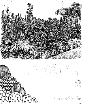 Двусторонние рабатки размещают обычно в центре участка, где они метут просматриваться со всех сторон. Особенно эффектно выглядят двухъярусные рабатки, когда в центре высаживают 1-2 ряда высокорослых растений, а с обеих сторон от центральной оси 2-3 ряда средне - или низкорослых растений. Внешние края такой рабатки могут быть оформлены почвопокровными растениями или полосой из плиток, щебня, керамического боя, цветного гравия, некрупных камней или плит плоского камня.