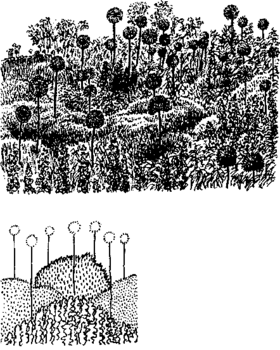 Эта близкая к естественной форма отличается плавно перетекающими колеблющимися контурами. Для создания такой плывущей структуры используют разные по высоте растения с различными формами роста. Не допускаются резкие переходы по высоте, создающие ступени, так как это нарушает плавность линий. Растения следует располагать так, чтобы каждый вид образовывал небольшую группу, отличающуюся от других высотой и протяженностью. Группы нужно размещать со смещением, чтобы не создавать четких линий и очертаний