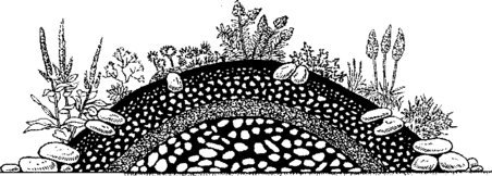 Менее крупные камни следует укладывать ближе к границам альпинария. Таким образом будет сформирован нижний ряд камней. После этого необходимо уложить второй ряд, размещая камни наиболее естественным образом, затем все последующие ряды, пока не будут уложены все камни. Следует помнить, что камни не должны располагаться вплотную. Пространства между камнями засыпают почвой. Их площадь должна быть достаточной для жизни растений, например для примулы необходимо не менее 10 см2. После этого можно приступать к посадке растений. Камни на альпийской горке должны служить фоном для декоративных растений и составлять вместе с ними живописную композицию. Декоративные растения, разные по форме и размерам, размещают между камнями на расстоянии 30-40 см друг от друга. Особое внимание следует уделять почвенной смеси, которую насыпают в ложбинки между камнями, так как она является непосредственной средой обитания растений и во многом определяет красоту альпийской горки. Почти все растения альпинария нуждаются в хорошо дренированной и одновременно задерживающей влагу почве. Обычная садовая земля такими свойствами, как правило, не обладает, поэтому необходимо готовить специальную посадочную смесь. Состав стандартной смеси, пригодной почти для всех растений альпинария, следующий: дерновая почва, торф или хорошо перепревший листовой перегной, мелкий щебень или битый камень в соотношении 1: 1: