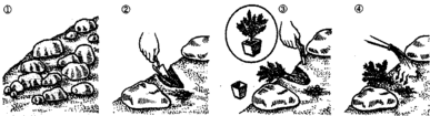 3. В небольшую ямку, сделанную в пространстве между камнями, помещают растение, расправляют его корни, присыпают землей и слегка утрамбовывают.