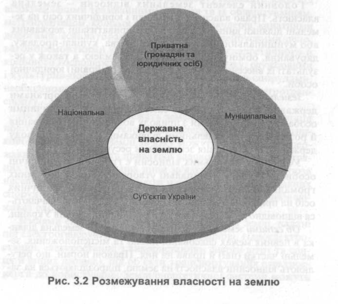 Кодекс розмежовує власність на землю (рис. 3.2). Згідно кодексу землі, які не є власністю громадян, юридичних осіб і муніципальних утворень, є державною власністю.