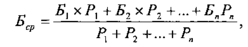 Бь Б2,...у Бп ~ бонітети агровиробничих груп грунтів по шкалі бонітетів даного оцінного району; Рь P2,..., Рп - площі ґрунтів.