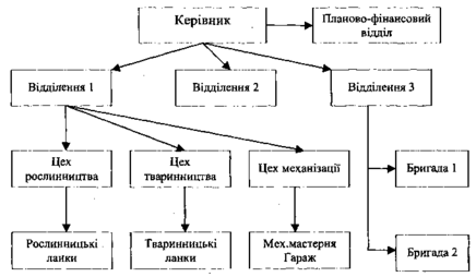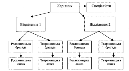 Відділова структура управління в сільськогосподарських підприємствах, як правило, припускає наявність функціональних підрозділів, очолюваних головними фахівцями господарства, що підпорядковуються керівнику підприємства (функціональна система організації управління).