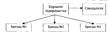 У невеликих підприємствах, як правило, з одним населеним пунктом організаційна структура управління виробництвом може бути обмежена окремими бригадами. Така форма отримала назву - бригадної (рис. 3.2).