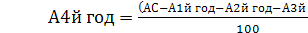А4-й год=(АС-А1-й год-А2-й год-А3-й год)*На/100