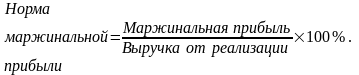 Показатель, характеризующий отношение маржинальной прибыли к сумме выручки от реализации, называется нормой маржинальной прибыли.
