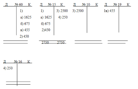 | 1 | Акцептован счет – платежное требование поставщика материалов: а) на фактическую стоимость приобретения; б) на сумму железнодорожного тарифа; в) на сумму НДС; | 1625 675 455 | 15 15 19 | 60 60 60 |