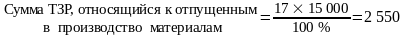 Остаток материалов на конец месяца составит 17 550 рублей, в т.ч. по учетным ценам на 15 000 рублей, ТЗР – 2 550 рублей.