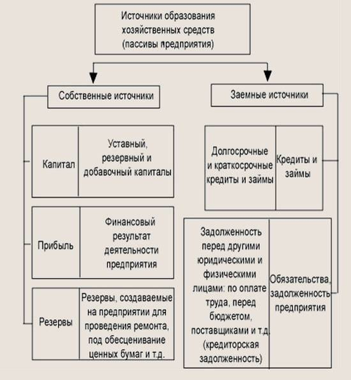 Все хозяйственные средства, которые предприятие уже имеет или собирается приобрести, были или могут быть получены за счет каких-либо источников, собственных или заемных средств, например кредитов банка. Поэтому, в зависимости от того, каковы источники поступления хозяйственных средств, их подразделяют на собственные и привлеченные, т.е. заемные. По аналогии с хозяйственными средствами, которые называют активами, источники образования этих средств называют пассивами.