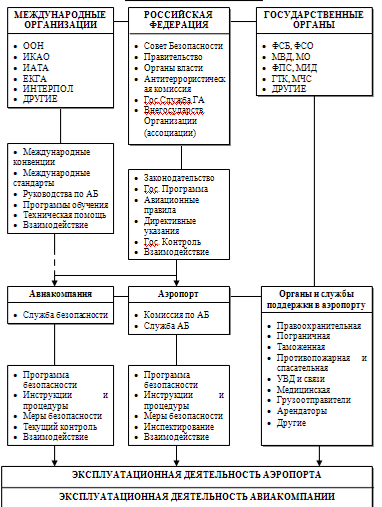 приведение законодательной базы РФ в соответствие с основными принципами обеспечения авиационной безопасности гражданской авиации России (Уголовный кодекс РФ, Кодекс об административных правонарушениях и др.).
