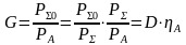 При цьому вважається, що ненаправлена антена має ККД рівний 100%, тобто РАо=Р∑0, тому вираження для коефіцієнта підсилення G можна записати у виді: