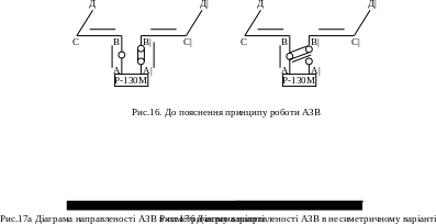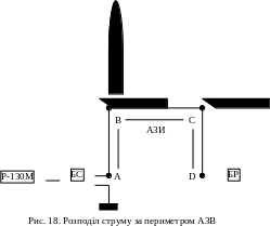 У симетричному варіанті (рис.16) випромінювання електромагнітної енергії, в основному, створюється струмами на ділянці ВР і В|С|. На цих ділянках струми спрямовані в одну сторону і, отже, поля в точці прийому складаються. На інших ділянках антени й у проводах зниження струми спрямовані в протилежні сторони, тому сумарне поле в крапці прийому мінімально чи дорівнює нулю. Антена в цьому варіанті працює в режимі зенітного випромінювання. У симетричному варіанті АЗВ має характеристику направленості, що дозволяє сконцентрувати випромінювання в зеніт у межах кутів від 500-600 до 900 до обрію (рис.17а).