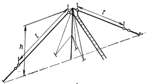 Для збільшення дальності зв'язку в діапазоні метрових хвиль штирьову антену часто встановлюють на щоглі висотою 11-18 м. Роль поверхні, що підстилає, у цьому випадку грають тверді противаги (рис.7). Живлення антени здійснюється за допомогою коаксіального кабелю (фідера).