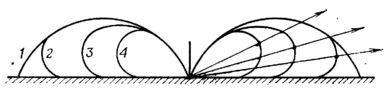 Як видно з малюнка, на ділянках АВ і CD струми рівні по величині і протилежні по напрямку, унаслідок чого в місці прийому поля, створювані випромінюючими ділянками AB і CD, виявляються в протифазі і взаємно знищуються. Напруженість поля в місці прийому створюється тільки горизонтальною частиною антени (ділянка ВС).