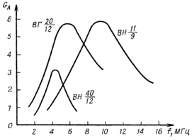 На Рис.6 представлені криві залежності абсолютних коефіцієнтів підсилення штирьових антен GА від частоти при роботі земною хвилею, що дозволяють зробити порівняльну оцінку ефективності антен.