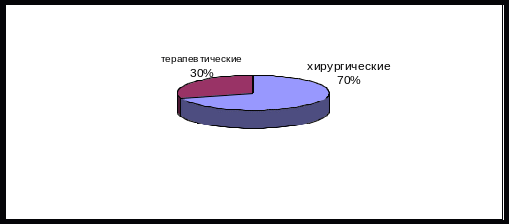Хирургический профиль – 70–75%, в т.ч.: