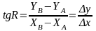 1. Визначають тангенс гострого кута R, утвореного віссю ОХ і напрямком АВ за формулою: