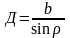 4. Визначити дальність Д. Для чого, не збиваючи положення візира, під його центральну риску підвести движком значення кута (ρ) по шкалі sin і проти початку (кінця) шкали движка лінійки прочитати значення дальності (Д), маючи на увазі, що