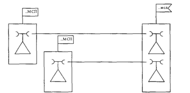 Связь методом применения радиостанции «посредника» организуется в тех случаях, когда появляется особая необходимость скрыть от радиоразведки противника местонахождение какого-либо штаба, командира или объекта. Для работы в качестве радиостанции «посредника» выделяются специальные радиостанции или используются радиостанции подчиненных узлов связи. При этом передача радиограммы (телефонограммы) производится в адрес «посредника», а принимает ее как радиостанция «посредника», так и тот корреспондент, для которого она фактически передается (Рис. 16). При выборе места размещения радиостанции «посредника» учитывается замысел маскировки, условия распространения радиоволн и наличие связи (проводной) с «посредником» из пункта радиоприема скрываемого корреспондента. Радиограмма скрываемому корреспонденту считается переданной, если получено подтверждение о приеме ее от радиостанции «посредника» после проверки качества приема радиограммы скрытым корреспондентом.