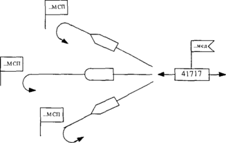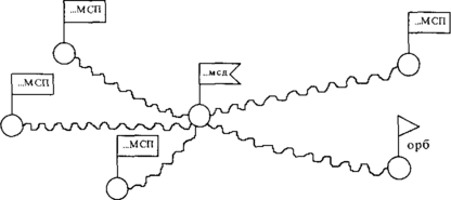 Ось фельдъегерско-почтовой связи – способ организации связи подвижными средствами старшего пункта управления ' (командира, штаба) с двумя и более подчиненными пунктами управления (командирами, штабами), при котором секретные и почтовые отправления доставляются через обменный пункт, развернутый вышестоящим штабом в районе дислокации подчиненных частей (Рис. 28).