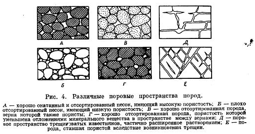 Структура порового пространства пород обусловлена большим числом факторов: гранулометрическим составом частиц, их формой, химическим составом пород, происхождением пор, а также соотношением количества больших и малых пор (рис. 4).