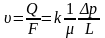 где Q — объемный расход жидкости в единицу времени; υ скорость линейной фильтрации; μ, — динамическая вязкость жидкости; Fплощадь фильтрации; Δр — перепад давления; Lдлина пористой среды.