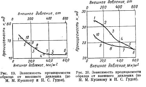 Для изучения проницаемости горных пород в условиях высокого внешнего давления созданы специальные приборы, позволяющие воспроизводить давления на образец, близкие по величине к горному.