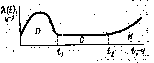 Рис. 2.1 Зависимость интенсивности отказов от времени.