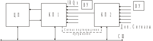 Для этого вводится сигнал ответа устройству данного приоритета. ЦП должен иметь столько линий подтверждения прерываний, сколько у него линий запроса.