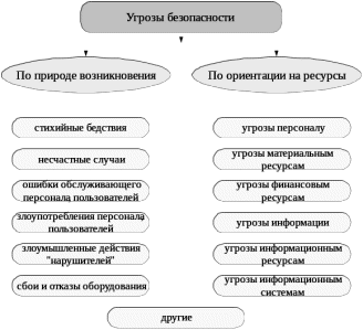 Кроме этого, информационным технологиям присуща подверженность различным видам воздействий, снижающих информационную безопасность. Их принято называть угрозами безопасности информации и информационной безопасности. Вполне очевидно, что понятия таких угроз формируются исходя из соответствующих понятий безопасности, при этом наиболее общие понятия безопасности и угроз сформулированы в Законе РФ "О безопасности".